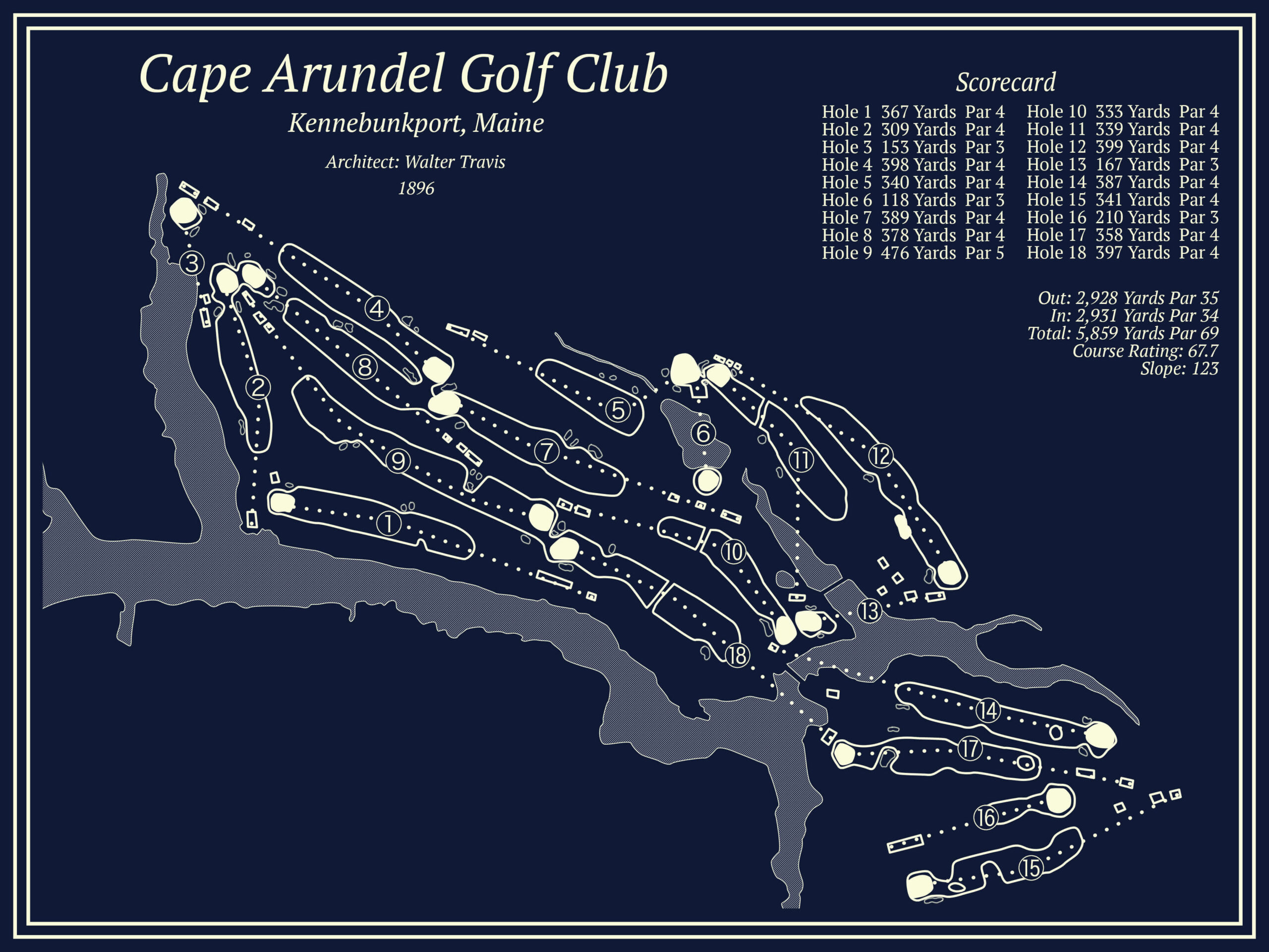 - Cape Arundel Golf Club (Walter Travis, Maine’s #1, coastal classic)