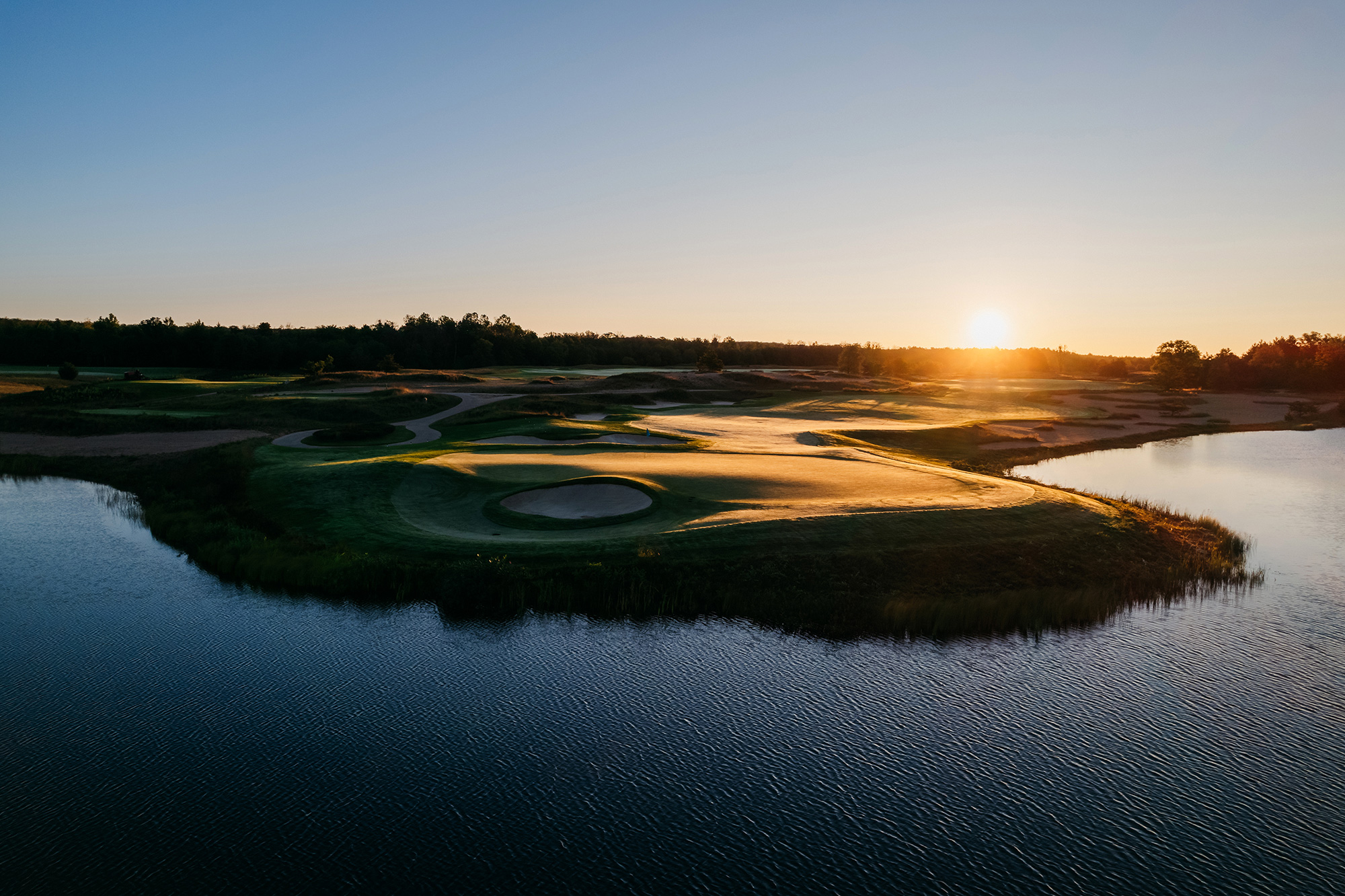 The original star, a Top 50 public course nationally with wide fairways, large greens, and two personalities: front nine through dense Huron National Forest pines, back nine opening to dramatic glacial sand dunes. Elevation shifts up to 100 feet, risk-reward holes, and a fun 19th-hole par-3 for settling matches. Classic, challenging, and beautifully conditioned.