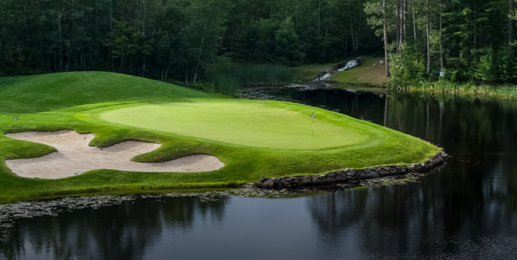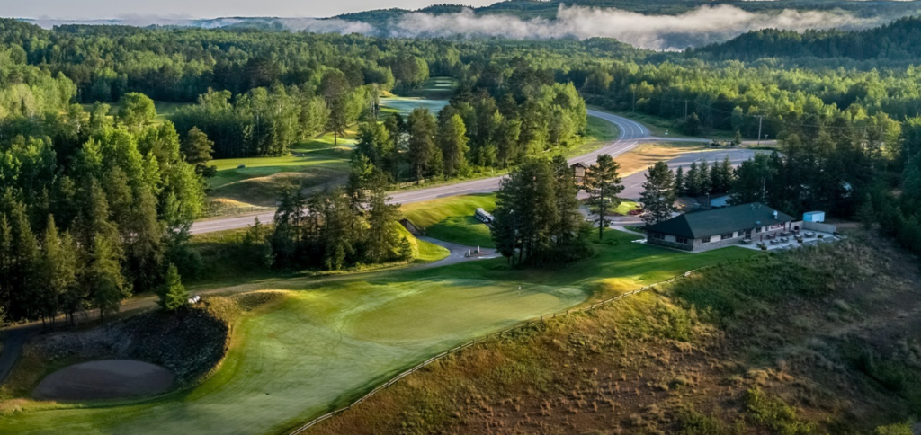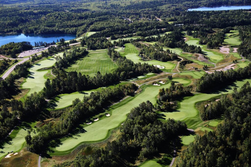 - Northwoods drama: Bold elevation, native grasses, bunkers, water, and former quarry/mining-inspired features