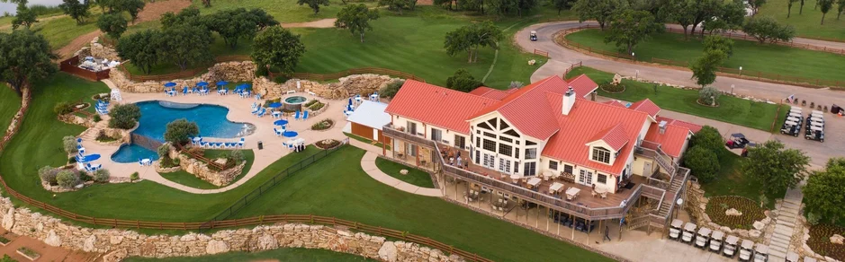 - The Hideout Golf Club & Resort on-site: Lake Brownwood frontage with lodge rooms, cabins, ranch houses; seasonal outdoor pool, fitness center, garden, shared lounge